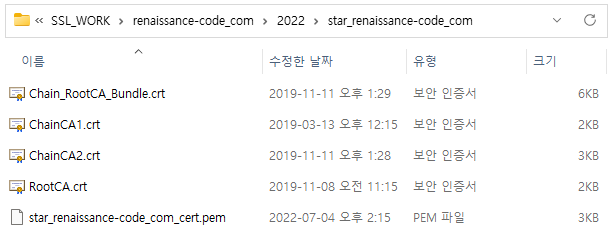 CSR 자동생성 및 NginX용으로 구매를 했기 때문에 파일 구성은 다음과 같고